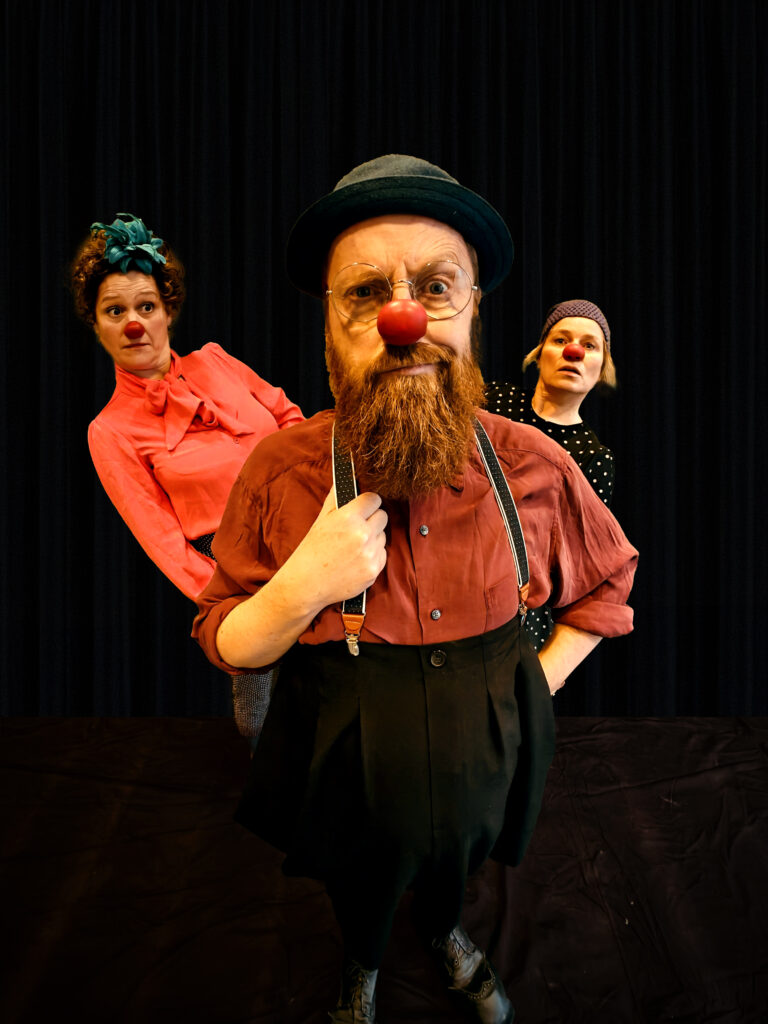 “Hvis man kniber øjnene lidt sammen” er en poetisk klovneforestilling, som inviterer publikum ind i hospitalsklovnenes finurlige univers – noget man ellers kun får lov at opleve bag hospitalets lukkede døre.